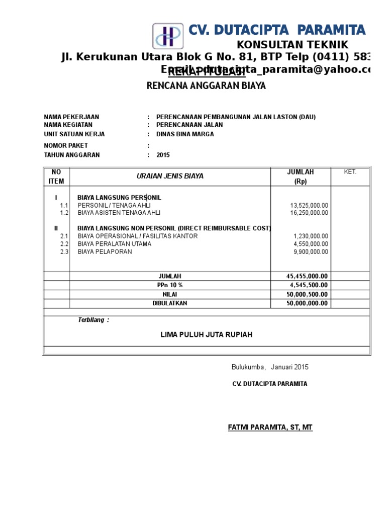 Contoh Rab Konsultan Perencana Sipilpedia Cute766